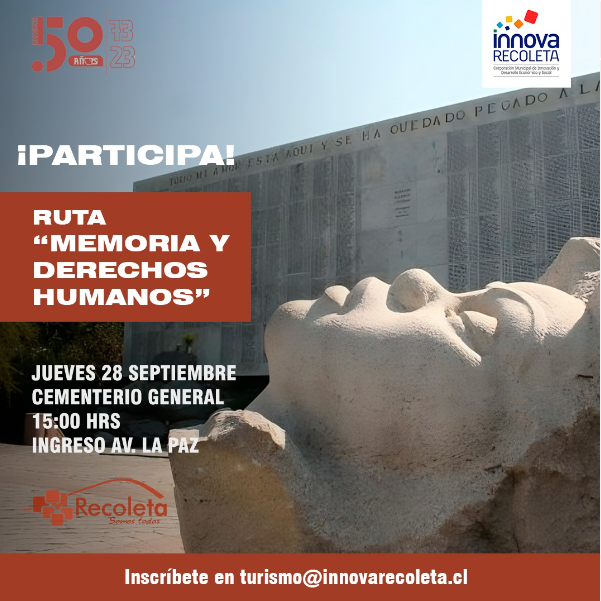 El próximo 27 de septiembre se celebra el Día Internacional del Turismo y Recoleta lo conmemora con una “Ruta de Memoria y Derechos Humanos” que se realizara el 28 de septiembre por el Cementerio General. Ingreso por Av. La Paz.